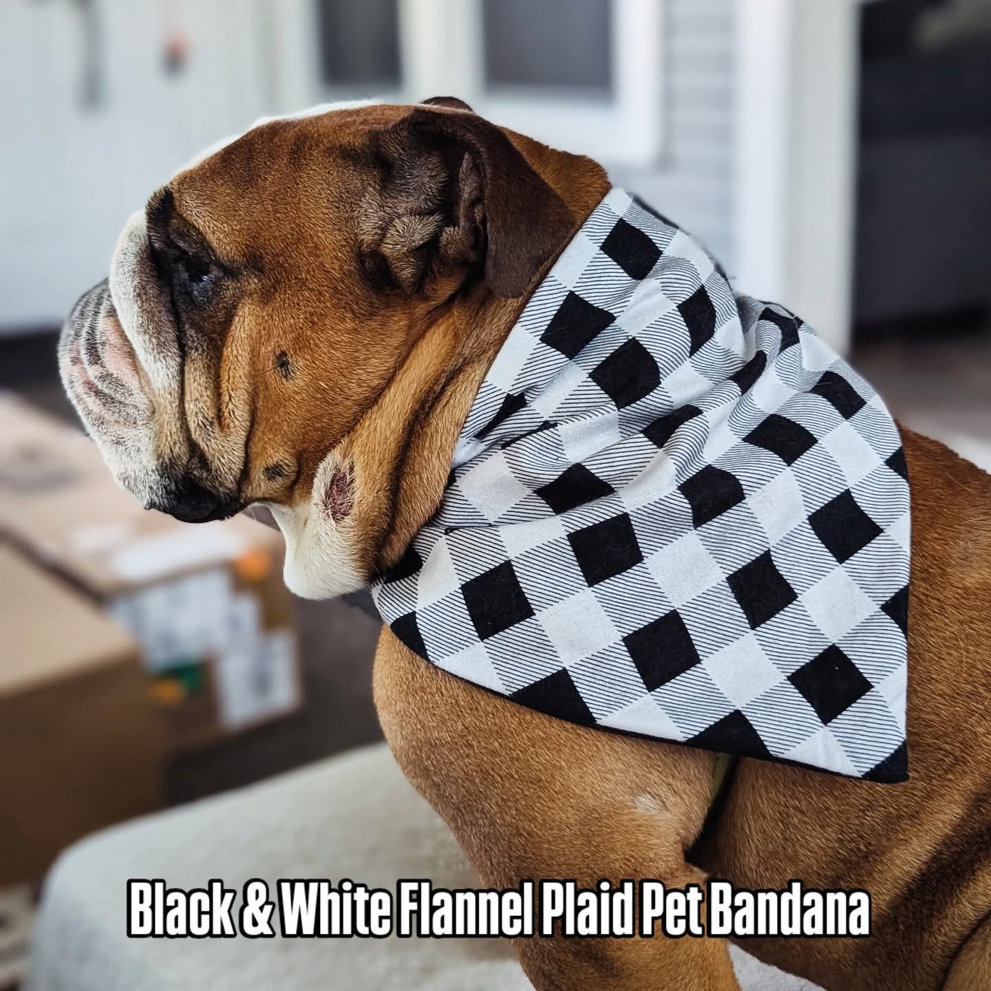 Flannel Plaid Black & White Pet Bandana